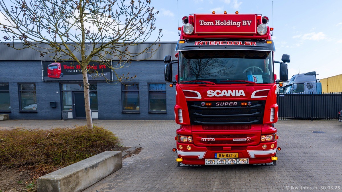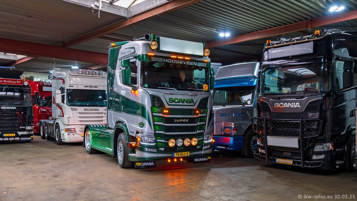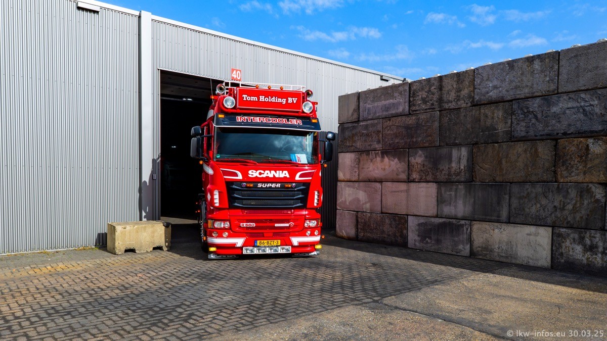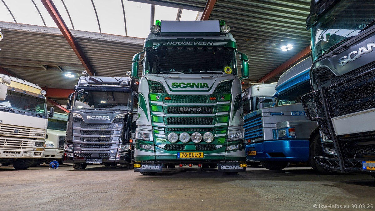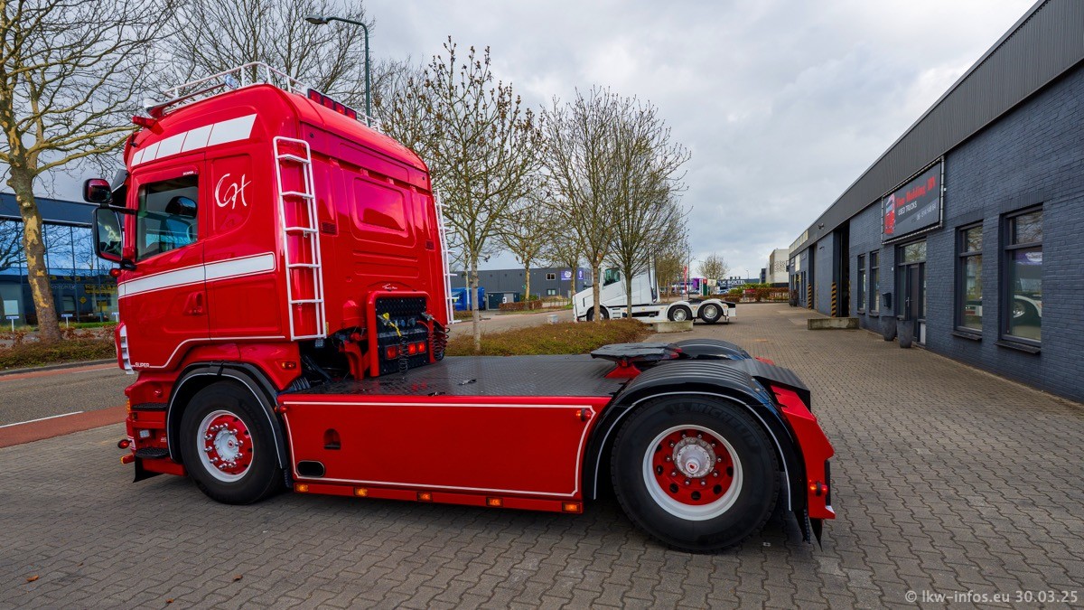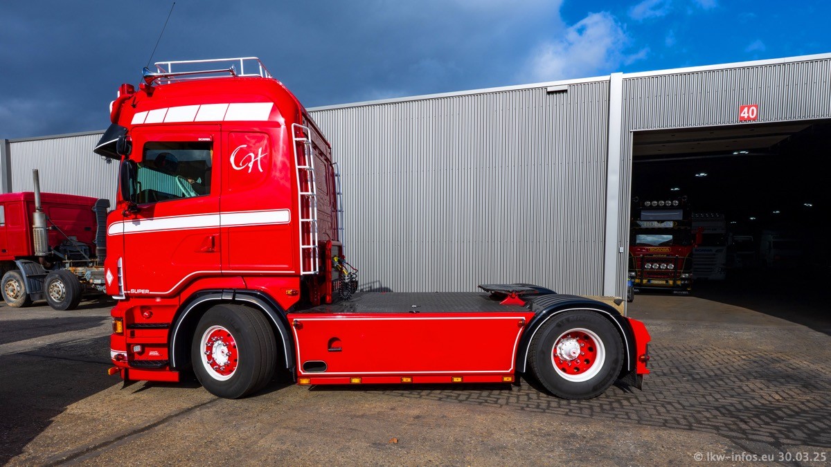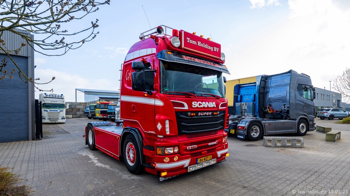 Inzwischen gibt es bei Tom Holding noch mehr Fahrzeuge als bisher, darunter auch einige neue. Der VOLVO VT 5 460 (die Nr. 15 von Vlastuin) ist neu und war eigentlich für einen Kunden in Dänemark gedacht, der das Fahrzeug aber nicht gekauft hat. Die beiden roten SCANIA 141 V8 und R 560 V8 kommen von einer bekannten deutschen Firnma und es gibt aktuell einge SCANIA V8 Showtrucks, die zum Verkauf stehen. Darunter auch wieder ein Fahrzeug von Lansdaal. Diesmal haben wir ein reines Fotoshooting gemacht da es aktuell so viele Fahrzeuge gibt. Videos und Film gibt es dann beim nächsten Besuch wieder.