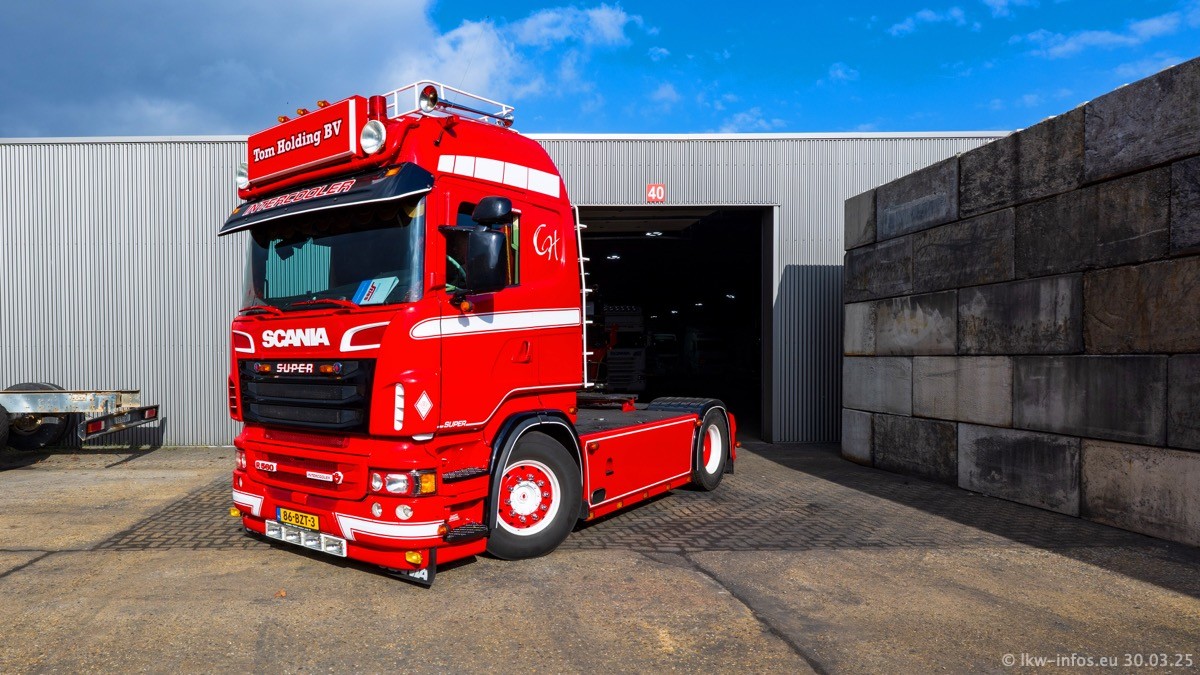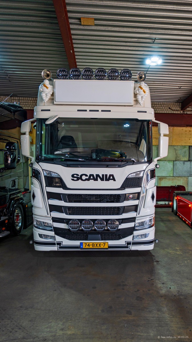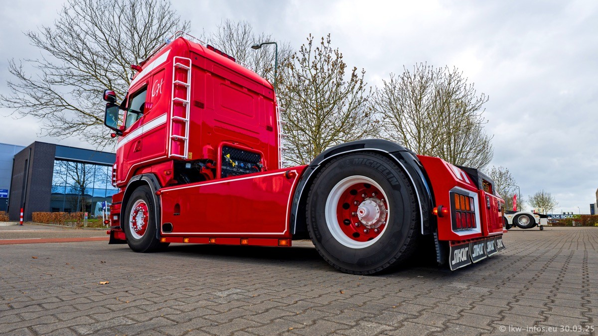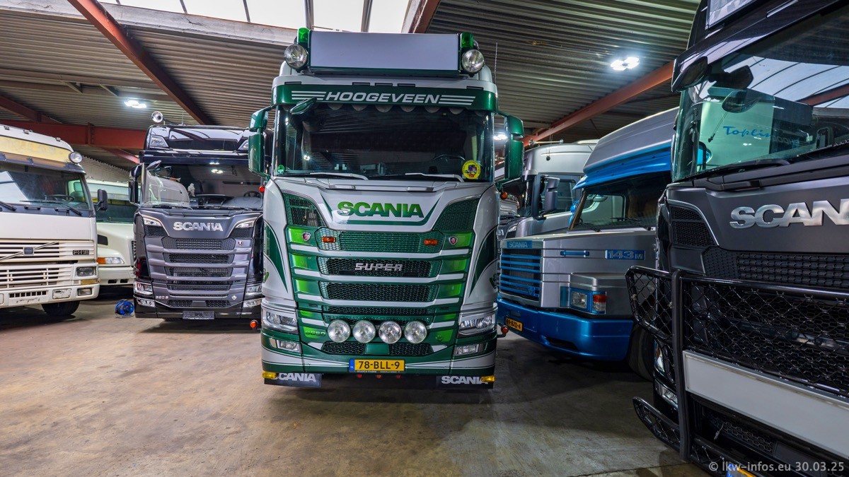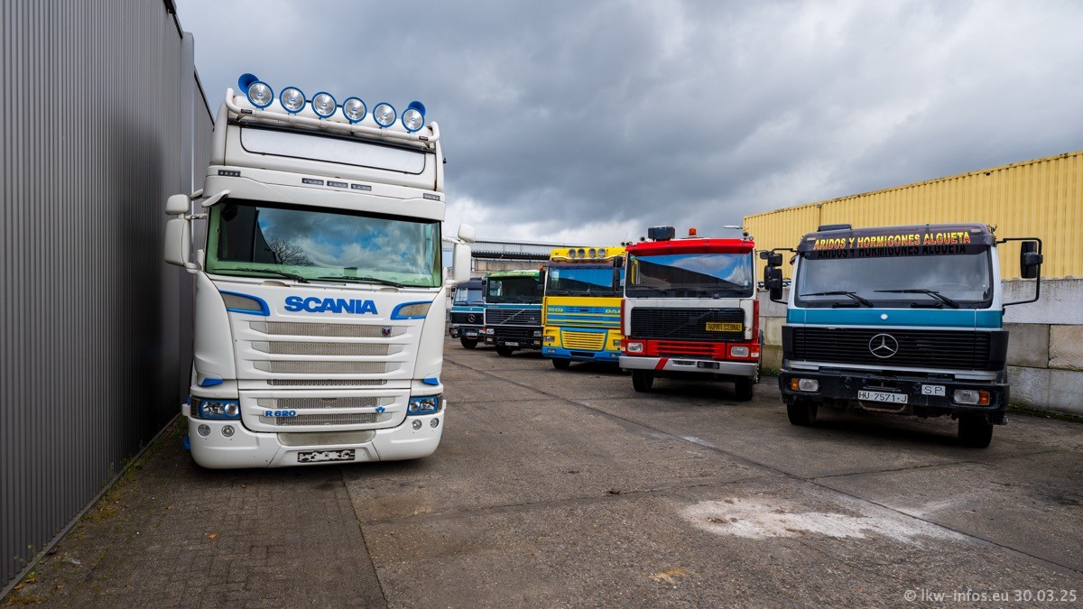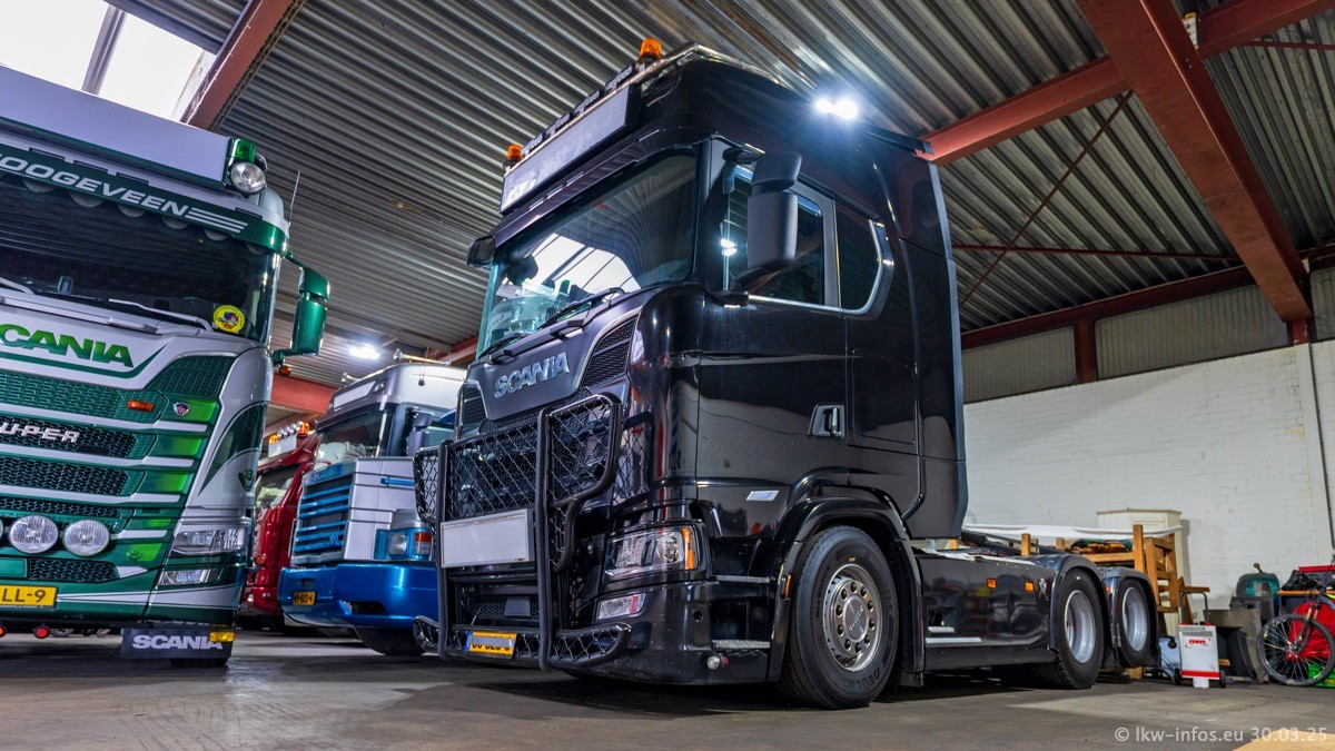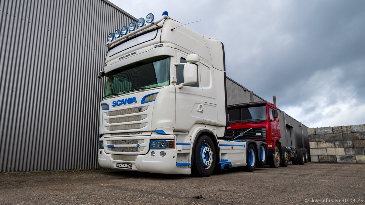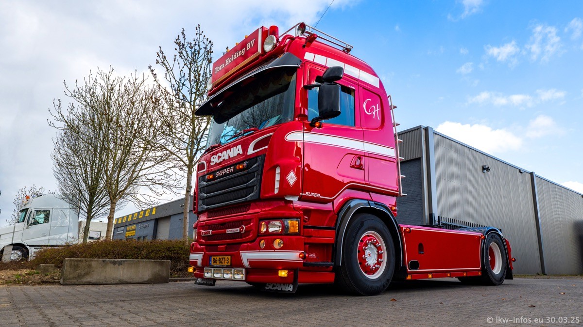 Inzwischen gibt es bei Tom Holding noch mehr Fahrzeuge als bisher, darunter auch einige neue. Der VOLVO VT 5 460 (die Nr. 15 von Vlastuin) ist neu und war eigentlich für einen Kunden in Dänemark gedacht, der das Fahrzeug aber nicht gekauft hat. Die beiden roten SCANIA 141 V8 und R 560 V8 kommen von einer bekannten deutschen Firnma und es gibt aktuell einge SCANIA V8 Showtrucks, die zum Verkauf stehen. Darunter auch wieder ein Fahrzeug von Lansdaal. Diesmal haben wir ein reines Fotoshooting gemacht da es aktuell so viele Fahrzeuge gibt. Videos und Film gibt es dann beim nächsten Besuch wieder.