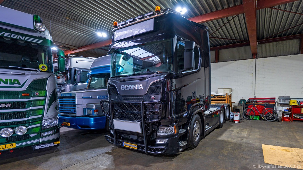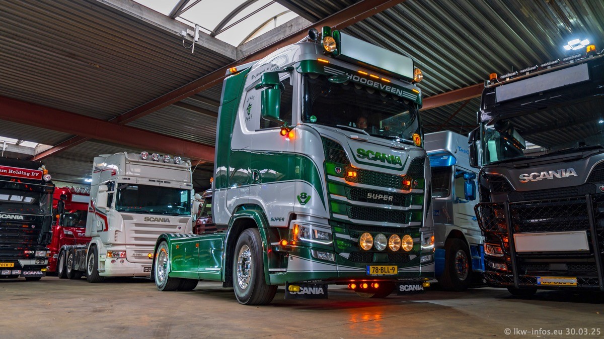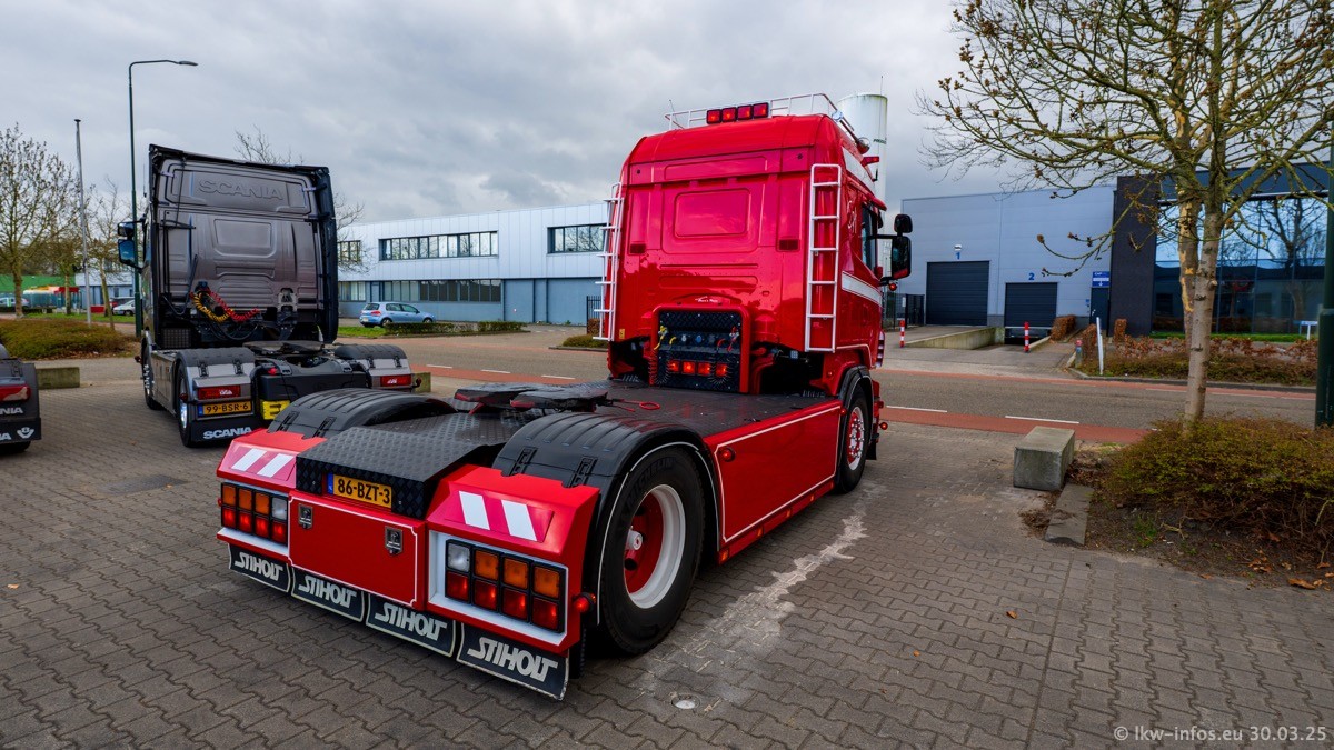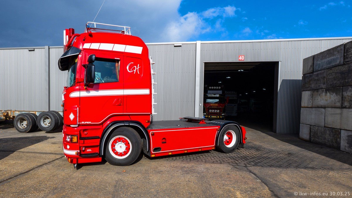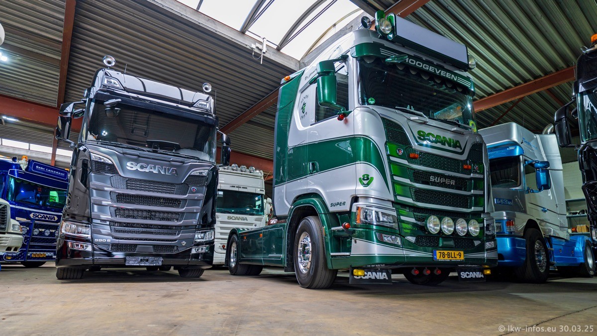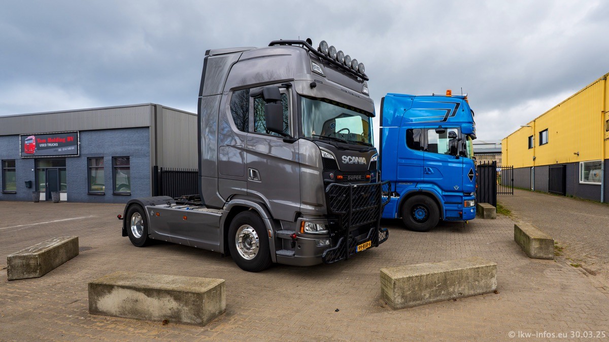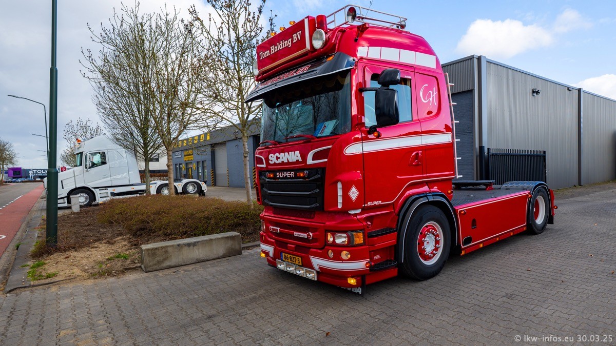 Inzwischen gibt es bei Tom Holding noch mehr Fahrzeuge als bisher, darunter auch einige neue. Der VOLVO VT 5 460 (die Nr. 15 von Vlastuin) ist neu und war eigentlich für einen Kunden in Dänemark gedacht, der das Fahrzeug aber nicht gekauft hat. Die beiden roten SCANIA 141 V8 und R 560 V8 kommen von einer bekannten deutschen Firnma und es gibt aktuell einge SCANIA V8 Showtrucks, die zum Verkauf stehen. Darunter auch wieder ein Fahrzeug von Lansdaal. Diesmal haben wir ein reines Fotoshooting gemacht da es aktuell so viele Fahrzeuge gibt. Videos und Film gibt es dann beim nächsten Besuch wieder.