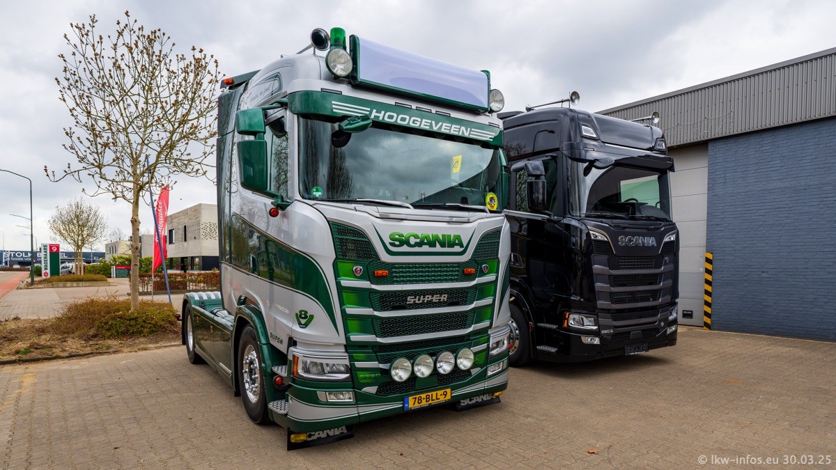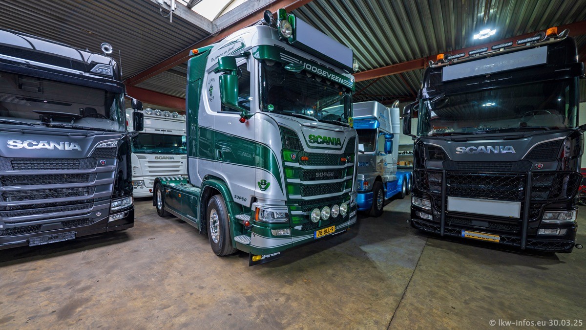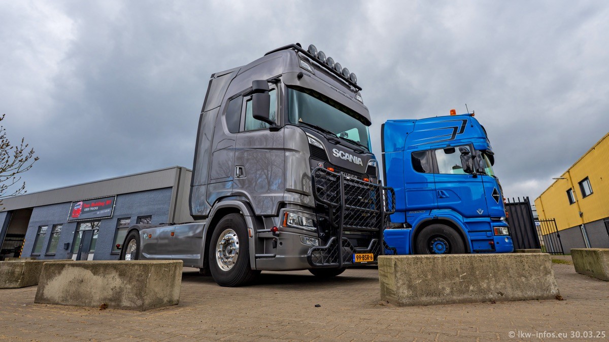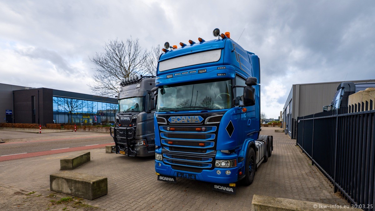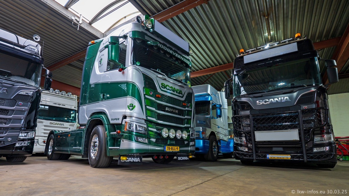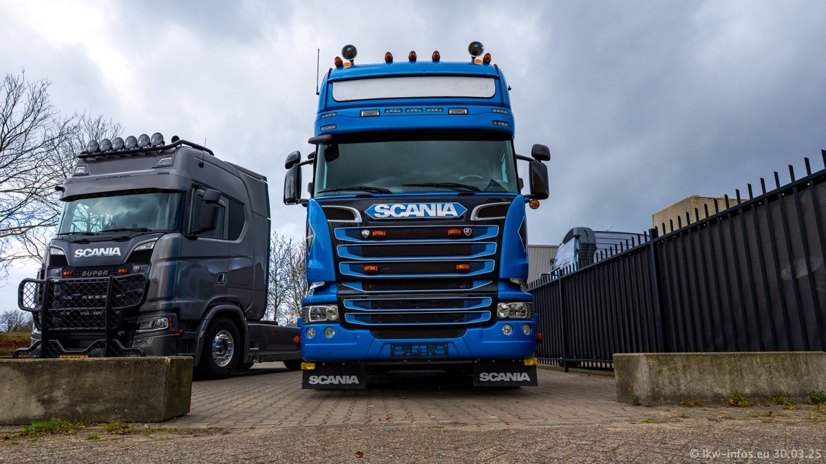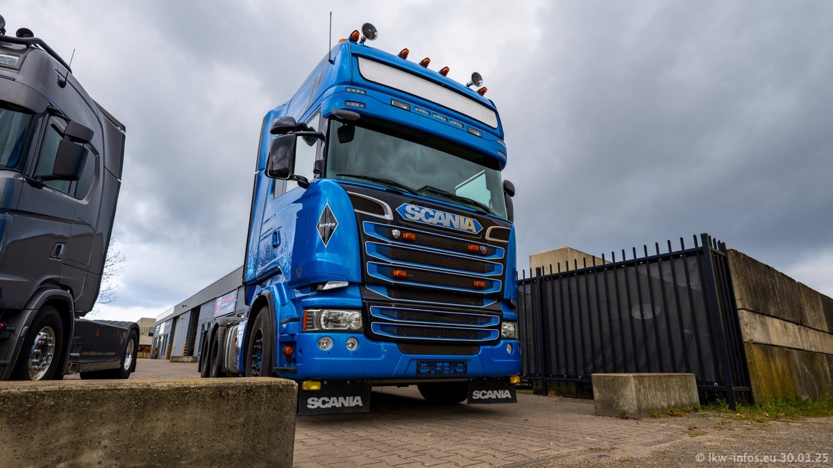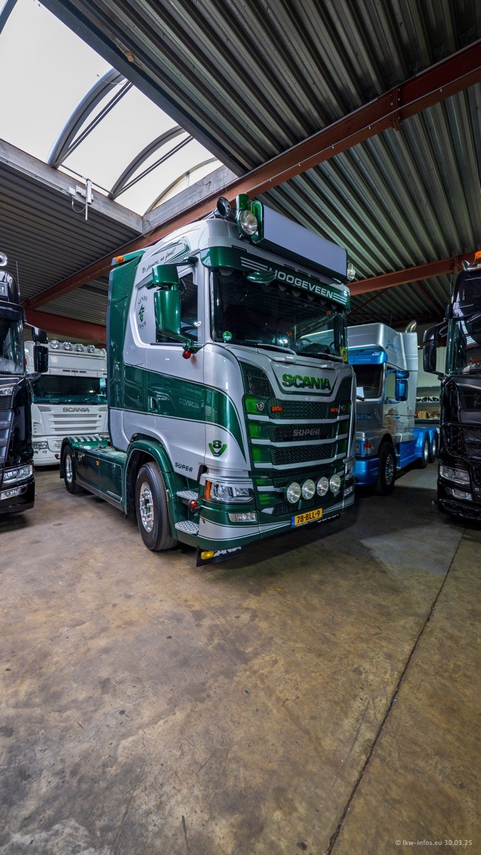Inzwischen gibt es bei Tom Holding noch mehr Fahrzeuge als bisher, darunter auch einige neue. Der VOLVO VT 5 460 (die Nr. 15 von Vlastuin) ist neu und war eigentlich für einen Kunden in Dänemark gedacht, der das Fahrzeug aber nicht gekauft hat. Die beiden roten SCANIA 141 V8 und R 560 V8 kommen von einer bekannten deutschen Firnma und es gibt aktuell einge SCANIA V8 Showtrucks, die zum Verkauf stehen. Darunter auch wieder ein Fahrzeug von Lansdaal. Diesmal haben wir ein reines Fotoshooting gemacht da es aktuell so viele Fahrzeuge gibt. Videos und Film gibt es dann beim nächsten Besuch wieder.
