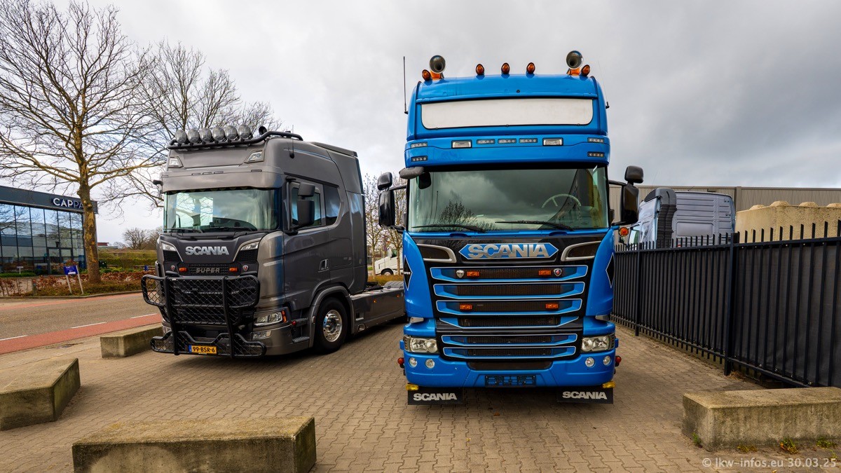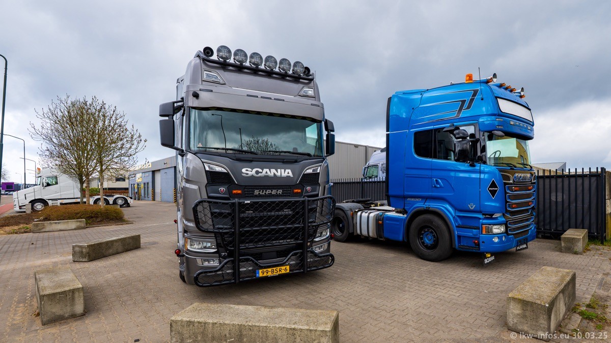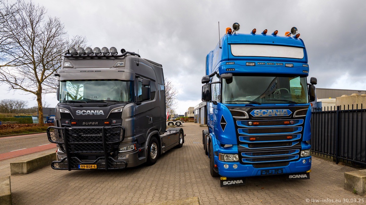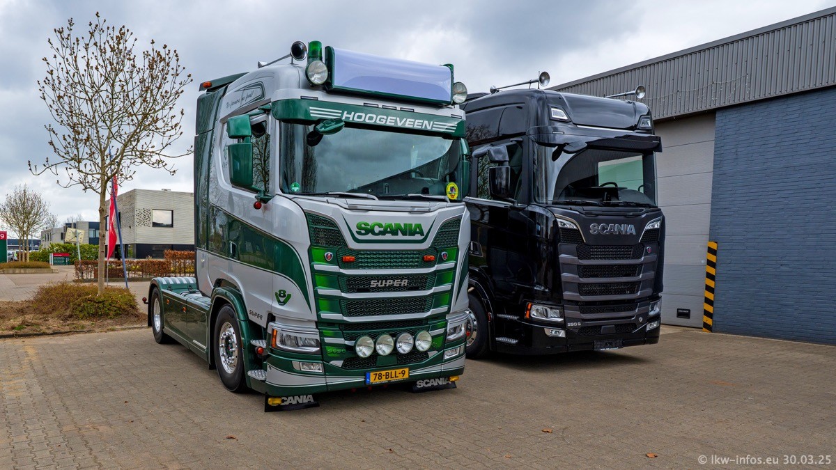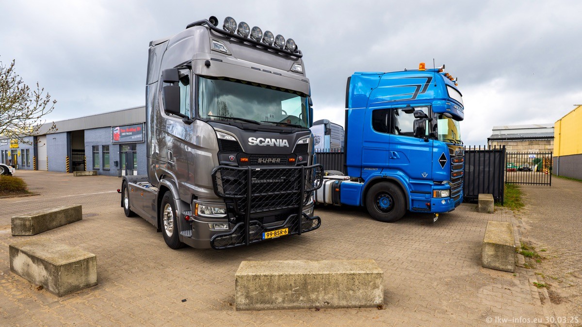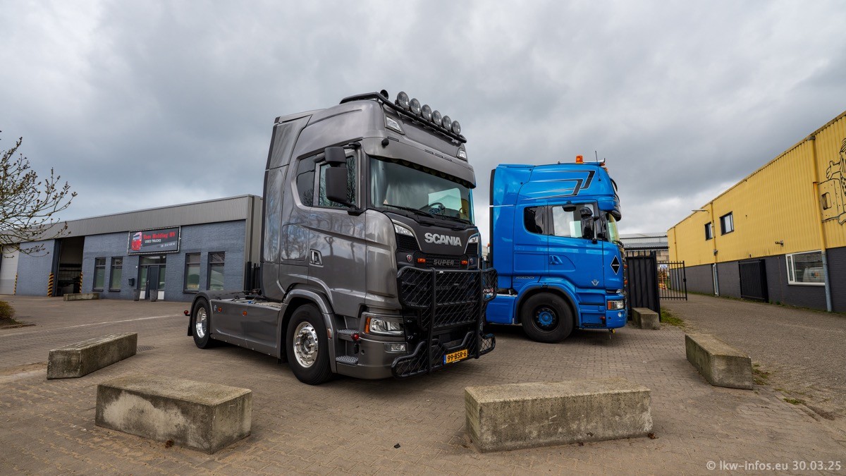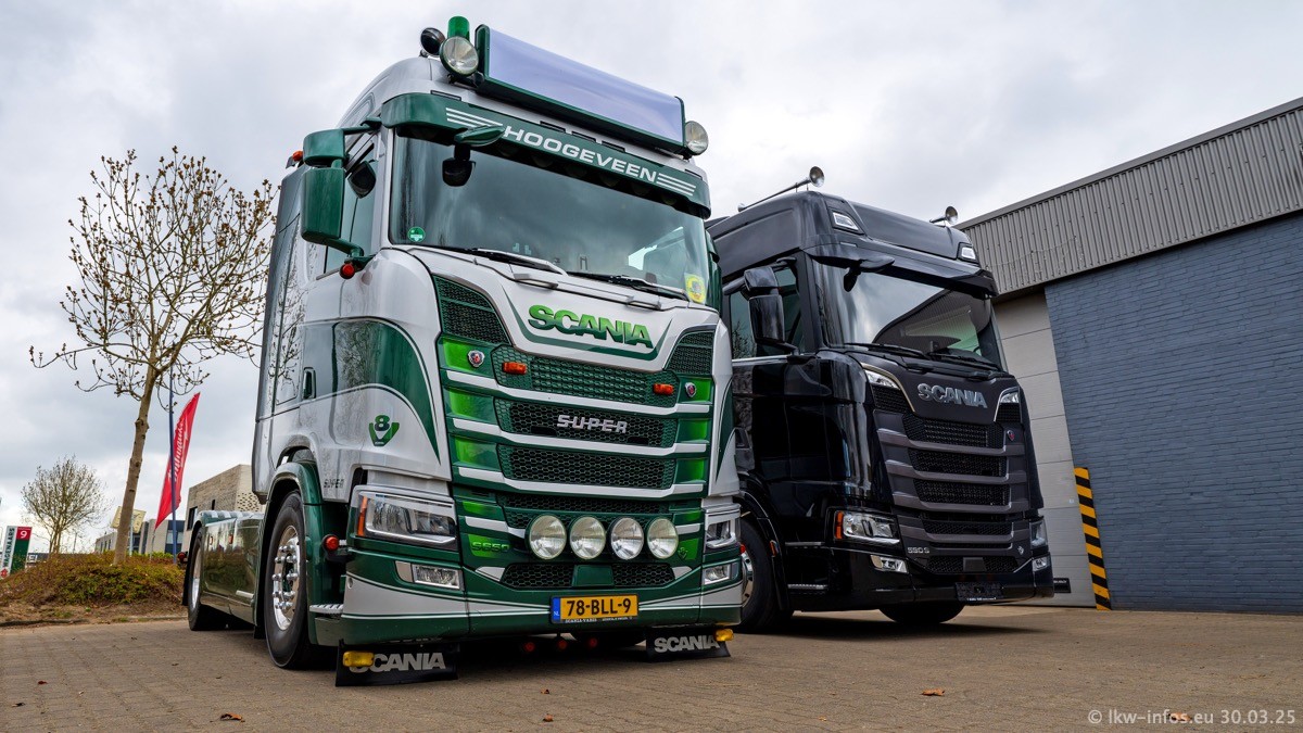 Inzwischen gibt es bei Tom Holding noch mehr Fahrzeuge als bisher, darunter auch einige neue. Der VOLVO VT 5 460 (die Nr. 15 von Vlastuin) ist neu und war eigentlich für einen Kunden in Dänemark gedacht, der das Fahrzeug aber nicht gekauft hat. Die beiden roten SCANIA 141 V8 und R 560 V8 kommen von einer bekannten deutschen Firnma und es gibt aktuell einge SCANIA V8 Showtrucks, die zum Verkauf stehen. Darunter auch wieder ein Fahrzeug von Lansdaal. Diesmal haben wir ein reines Fotoshooting gemacht da es aktuell so viele Fahrzeuge gibt. Videos und Film gibt es dann beim nächsten Besuch wieder.