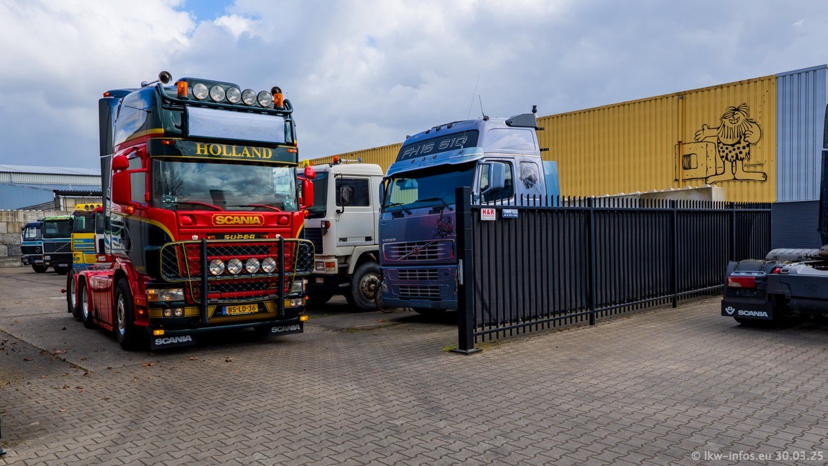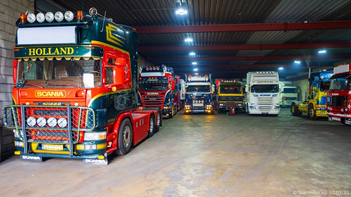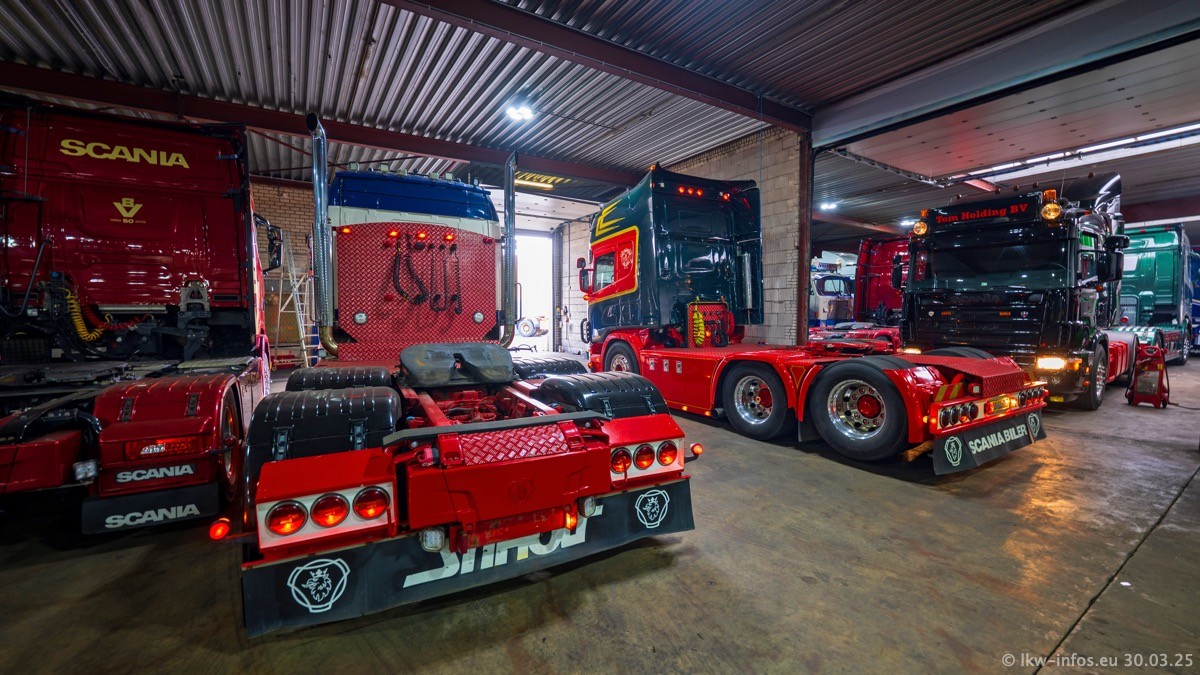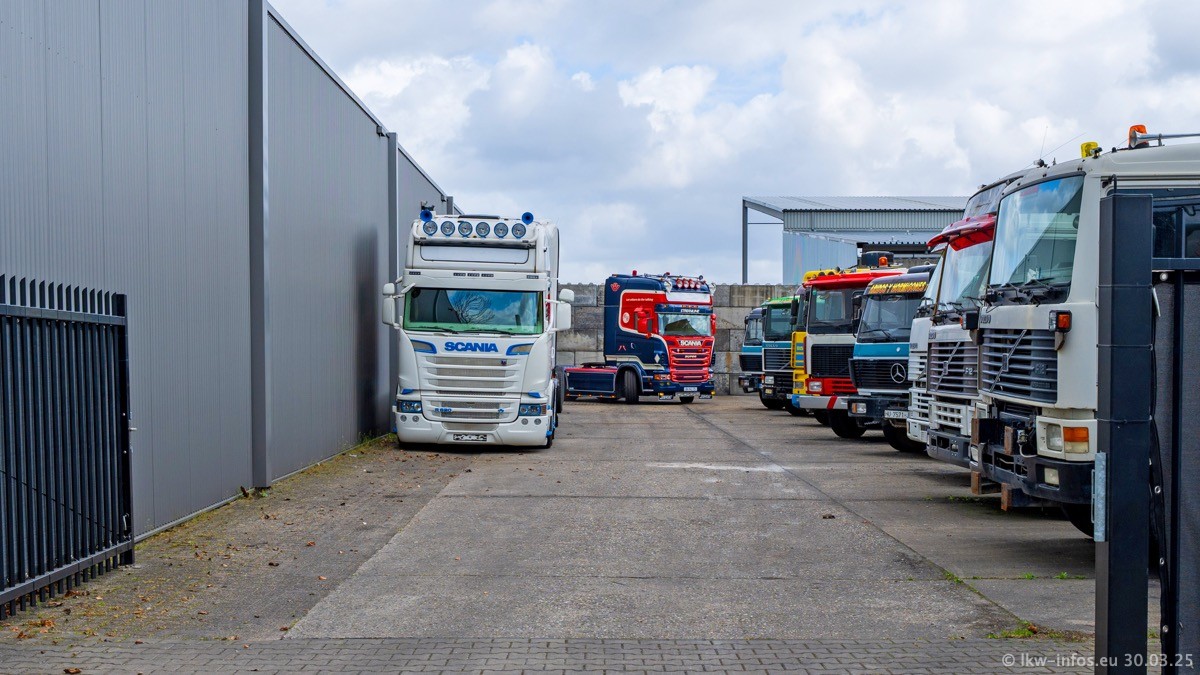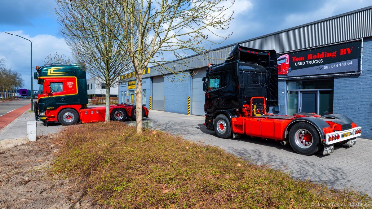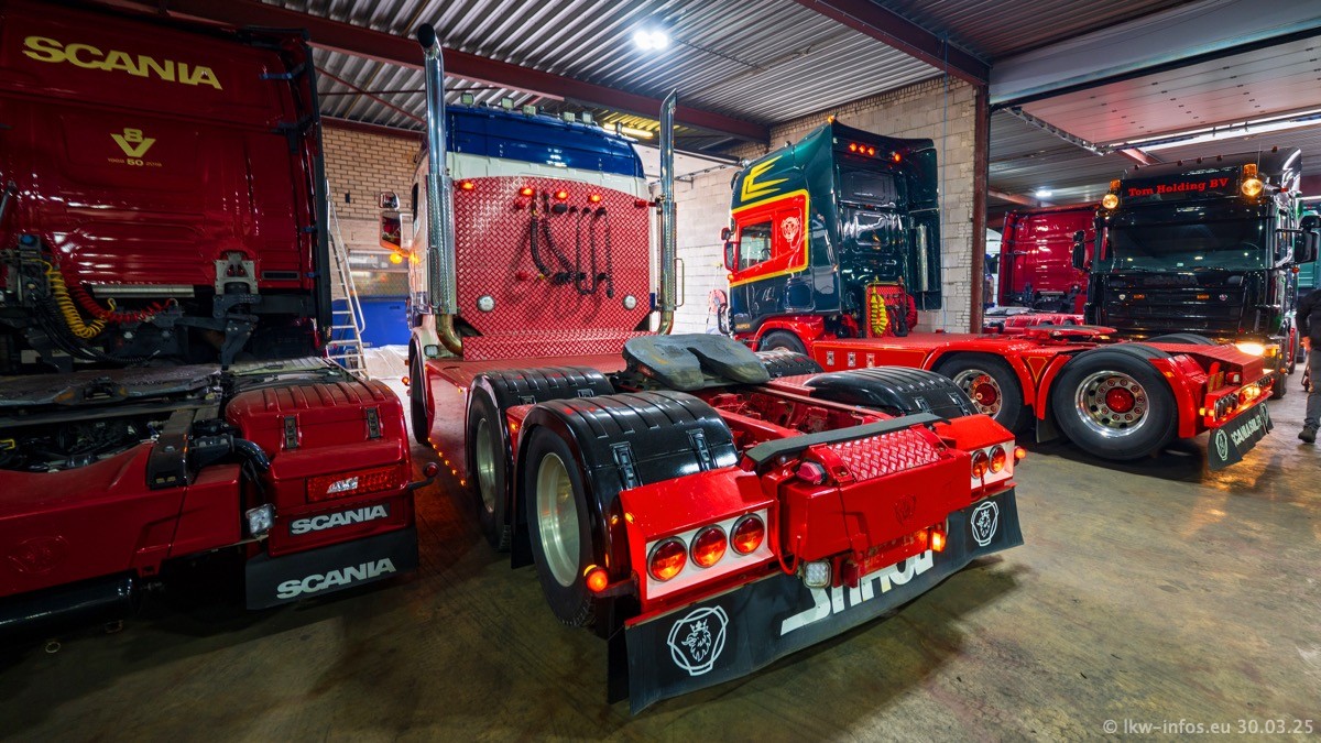 Inzwischen gibt es bei Tom Holding noch mehr Fahrzeuge als bisher, darunter auch einige neue. Der VOLVO VT 5 460 (die Nr. 15 von Vlastuin) ist neu und war eigentlich für einen Kunden in Dänemark gedacht, der das Fahrzeug aber nicht gekauft hat. Die beiden roten SCANIA 141 V8 und R 560 V8 kommen von einer bekannten deutschen Firnma und es gibt aktuell einge SCANIA V8 Showtrucks, die zum Verkauf stehen. Darunter auch wieder ein Fahrzeug von Lansdaal. Diesmal haben wir ein reines Fotoshooting gemacht da es aktuell so viele Fahrzeuge gibt. Videos und Film gibt es dann beim nächsten Besuch wieder.
