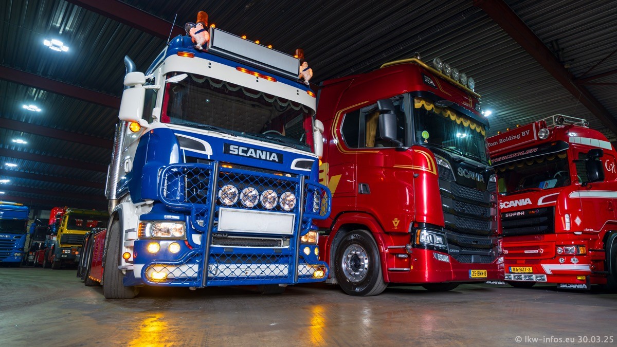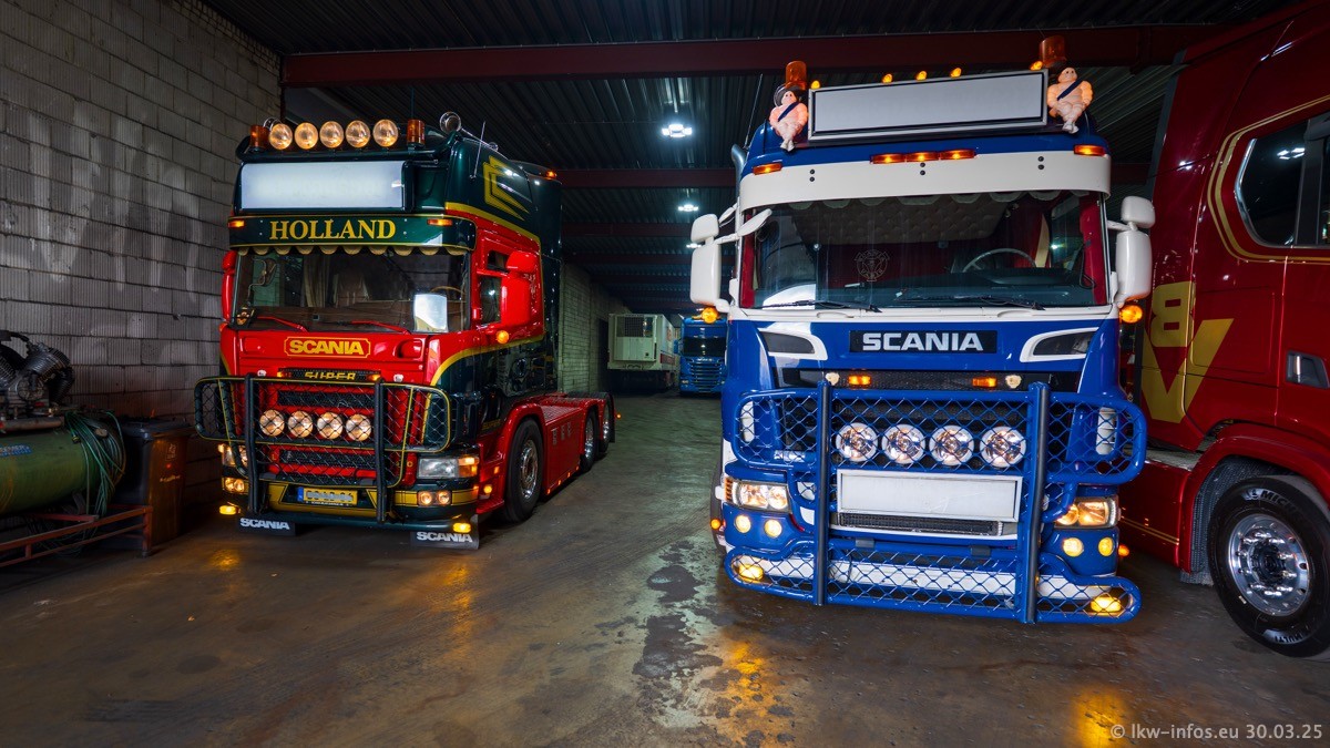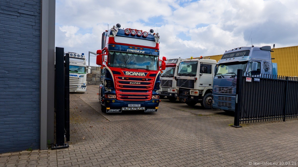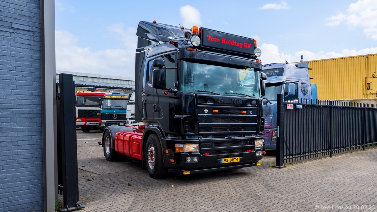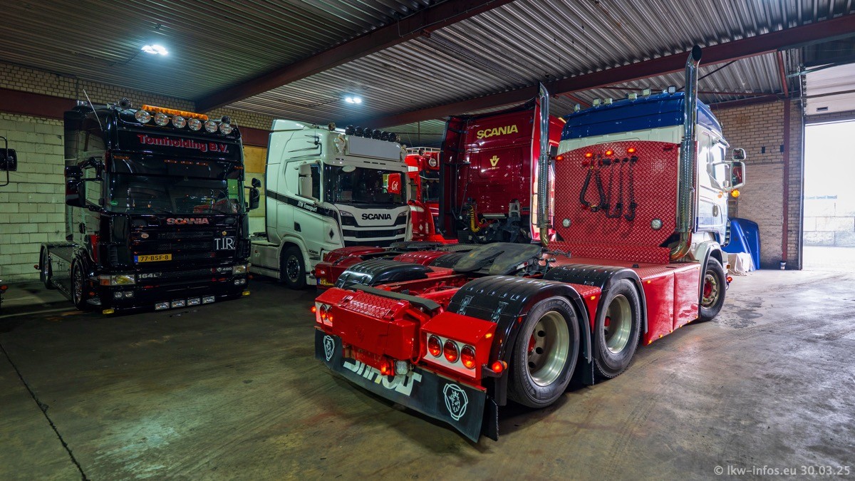 Inzwischen gibt es bei Tom Holding noch mehr Fahrzeuge als bisher, darunter auch einige neue. Der VOLVO VT 5 460 (die Nr. 15 von Vlastuin) ist neu und war eigentlich für einen Kunden in Dänemark gedacht, der das Fahrzeug aber nicht gekauft hat. Die beiden roten SCANIA 141 V8 und R 560 V8 kommen von einer bekannten deutschen Firnma und es gibt aktuell einge SCANIA V8 Showtrucks, die zum Verkauf stehen. Darunter auch wieder ein Fahrzeug von Lansdaal. Diesmal haben wir ein reines Fotoshooting gemacht da es aktuell so viele Fahrzeuge gibt. Videos und Film gibt es dann beim nächsten Besuch wieder.