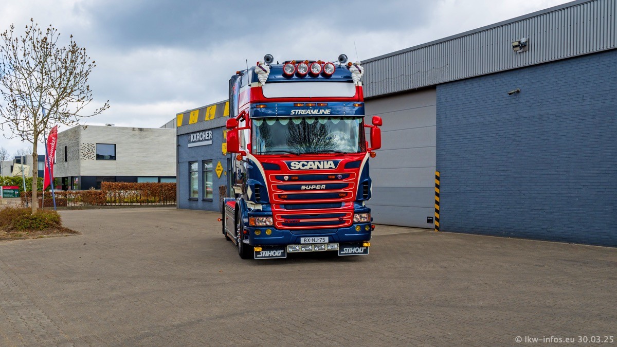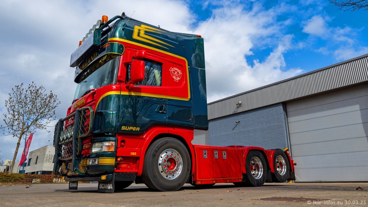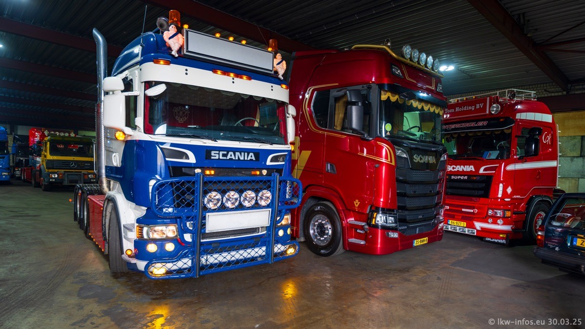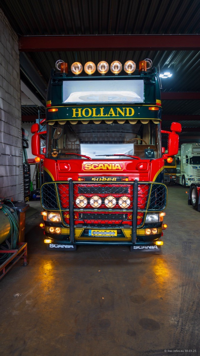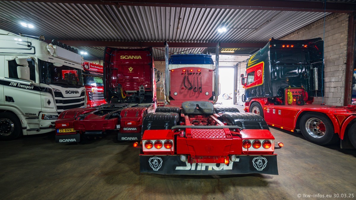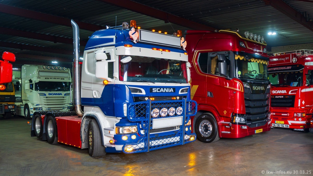 Inzwischen gibt es bei Tom Holding noch mehr Fahrzeuge als bisher, darunter auch einige neue. Der VOLVO VT 5 460 (die Nr. 15 von Vlastuin) ist neu und war eigentlich für einen Kunden in Dänemark gedacht, der das Fahrzeug aber nicht gekauft hat. Die beiden roten SCANIA 141 V8 und R 560 V8 kommen von einer bekannten deutschen Firnma und es gibt aktuell einge SCANIA V8 Showtrucks, die zum Verkauf stehen. Darunter auch wieder ein Fahrzeug von Lansdaal. Diesmal haben wir ein reines Fotoshooting gemacht da es aktuell so viele Fahrzeuge gibt. Videos und Film gibt es dann beim nächsten Besuch wieder.