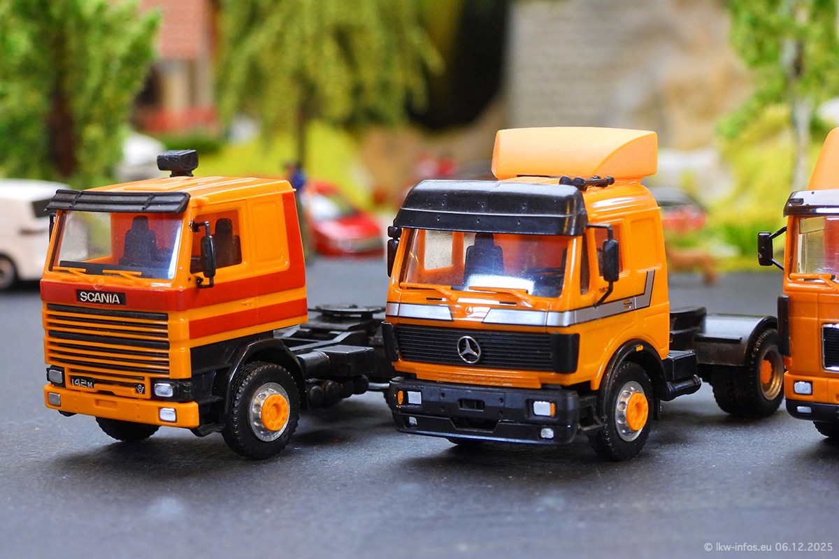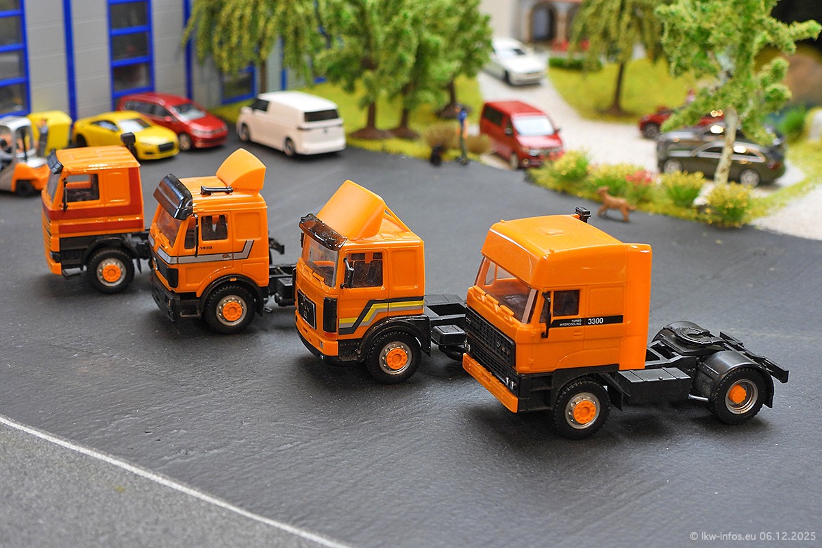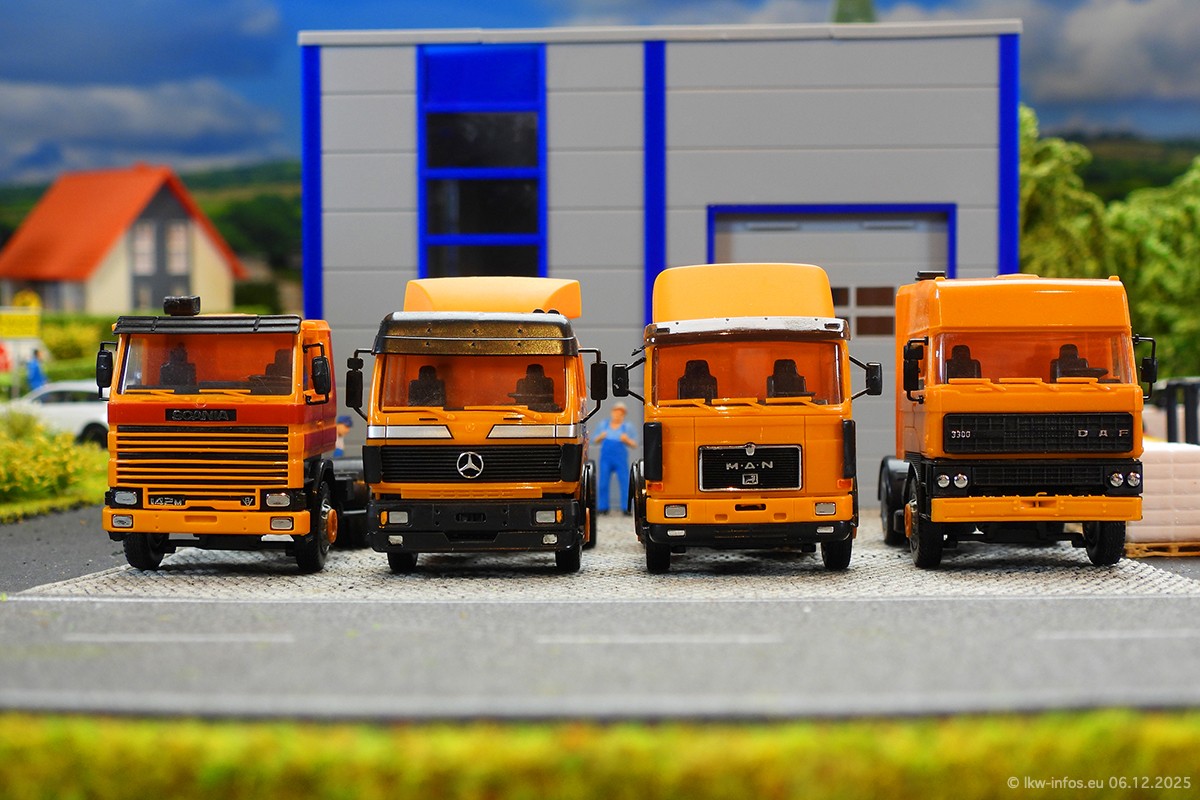 Dieses Viererset ist vermutlich aus den 1990er Jahren und das waren damals mit die ersten Modelle in meiner Sammlung. Ich habe die Modelle aufbereitet und mit Zubehör versehen. So können sich die LKW, die aus heutiger Sicht Klassiker/Oldtimer sind noch sehen lassen .